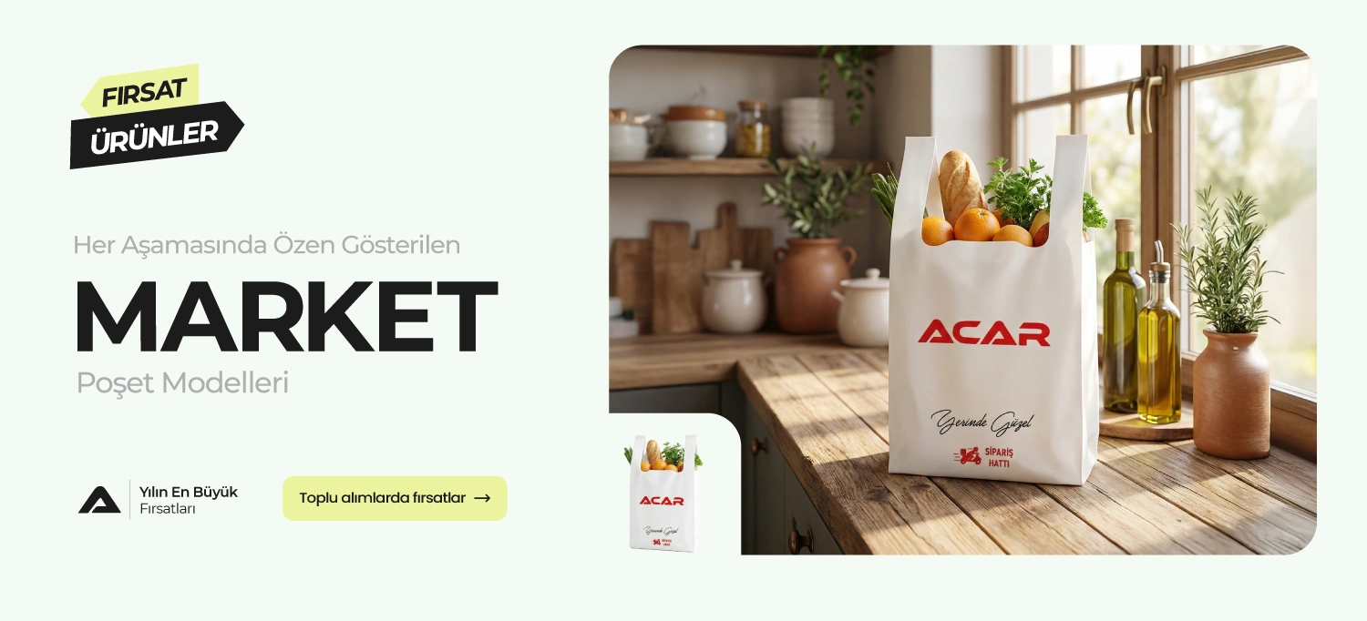 Ürün yelpazemiz; marka kimliğinizi öne çıkaran baskılı poşetler, e-ticaret için güvenli ve dayanıklı kargo poşetleri, gıda ve tekstil ürünlerine uzun ömürlü koruma sağlayan vakum poşetleri ile perakende sektörüne yönelik alışveriş ve market poşetlerinden oluşmaktadır. Ayrıca ürün sunumunu güçlendiren tekstil ambalajları, çevre dostu bez poşetler, hijyen standartlarına uygun gıda ambalajları ve dayanıklı yapılarıyla öne çıkan deterjan–kimyasal ürün ambalajları ile birçok sektöre özel çözümler sunmaktayız.